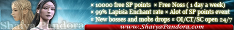 Hello, Welcome to Shiaya Pandora Server., There is a lot of stuffs to do on our server right now. Many sp items are free and much much more items that are hard to find but easy to get on our server. We opened ep4 a few weeks ago and now we opened for p